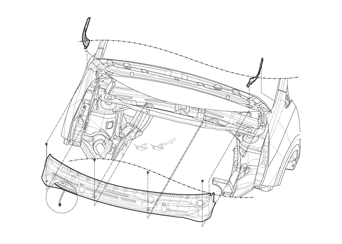 | 4. | Detach the clips, then remove the cowl top cover (A).