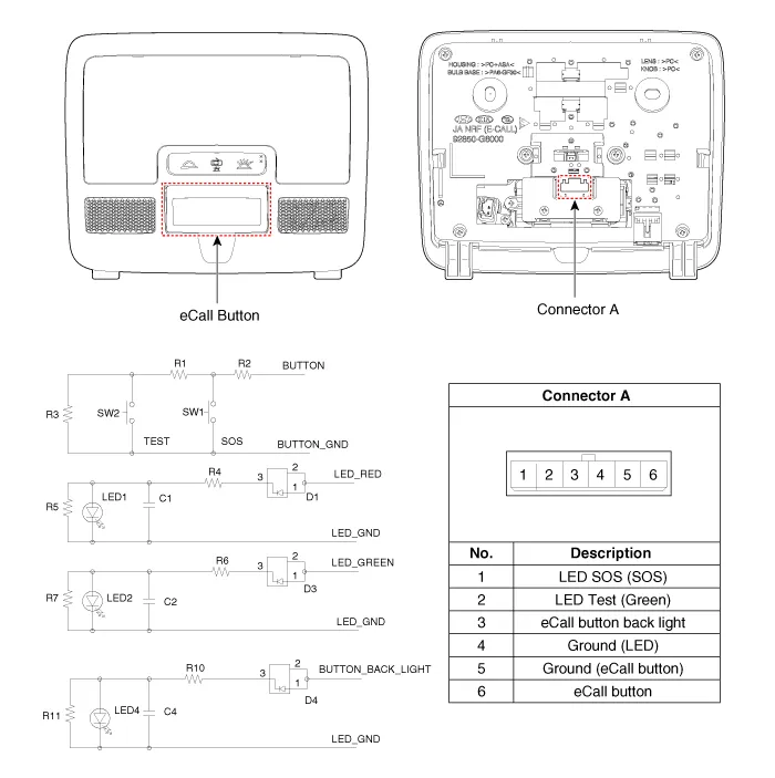 Components and components location Component The eCall unit for AVN is equipped in AVN head unit. Repair procedures Removal Carry out the Test Mode in the following cases.