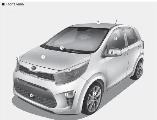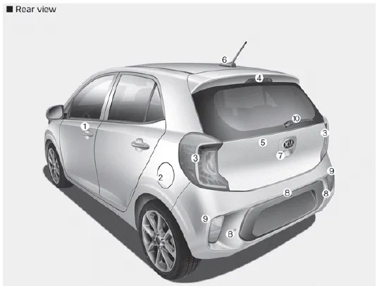 1. Inside door handle 2. Door lock/unlock button 3. Outside rearview mirror folding switch 4. Outside rearview mirror control switch 5. Central door lock switch 6.