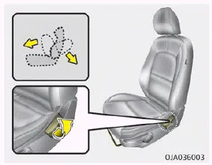 Adjust the seat before driving, and make sure the seat is locked securely by trying to move forward and rearward without using the lever. If the seat moves, it is not locked properly.