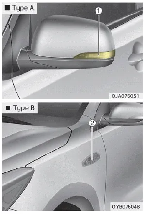 1. Rear turn signal lamp (Bulb type) 2. Tail lamp (BULB type) 3. Stop and tail lamp (BULB type) 4. Tail lamp (LED type) 5. Stop and tail lamp (LED type) 1.