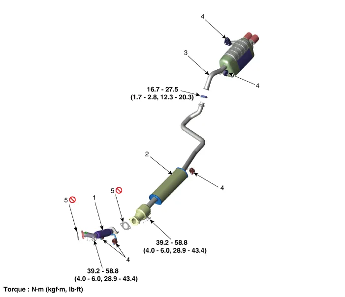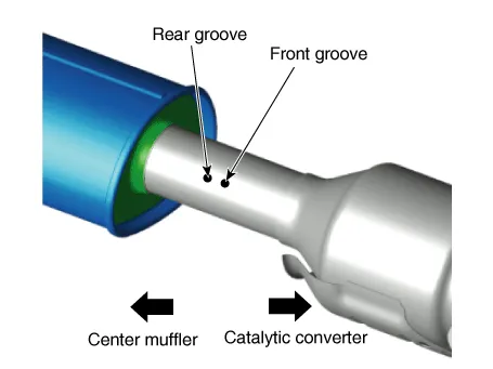| (3) | Tighten the catalytic converter and the center muffler to specified torque.