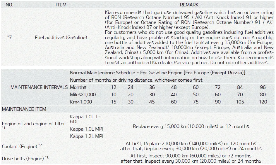The following maintenance services must be performed to ensure good emission control and performance. Keep receipts for all vehicle emission services to protect your warranty. Where both mileage and time are shown, the frequency of service is determined by whichever occurs first.