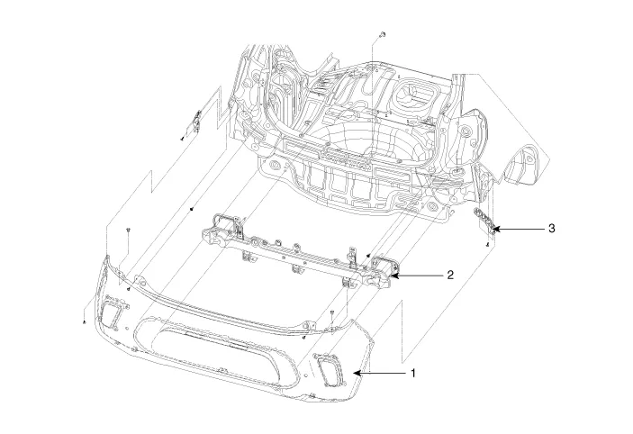 | 11. Rear bumper cover assembly 2. Rear bumper beam | 3. Rear bumper side mounting bracket [LH] |