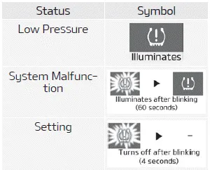 If the indicator remains illuminated or illuminates even after TPMS setting, have the system checked by a professional workshop. Kia recommends to visit an authorized Kia dealer/service partner.