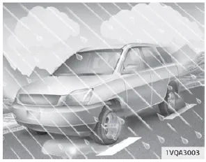 Driving in flooded areas Avoid driving through flooded areas unless you are sure the water is no higher than the bottom of the wheel hub. Drive through any water slowly.