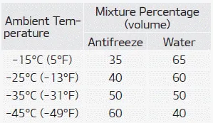 Check the antifreeze protection and coolant level at least once a year, at the beginning of the winter season, and before traveling to a colder climate.