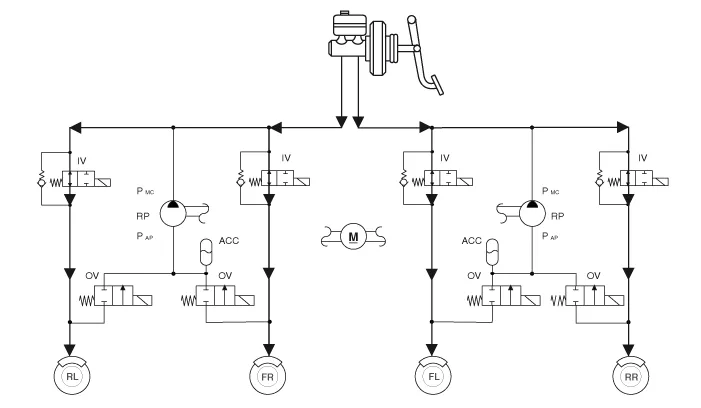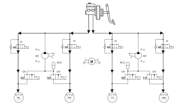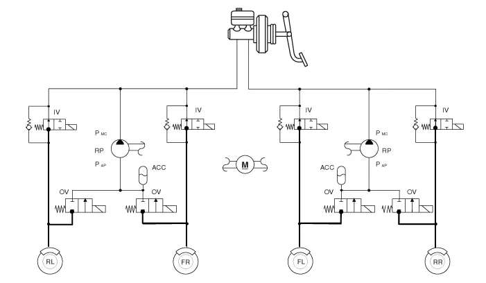 IV : Inlet Valve OV : Outlet Valve RL : Rear left wheel FR : Front right wheel FL : Front left wheel RR : Rear right wheel RP : Return pump |