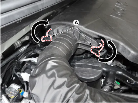 | 1. | Separate the air duct by unlocking the air duct clamp (A).