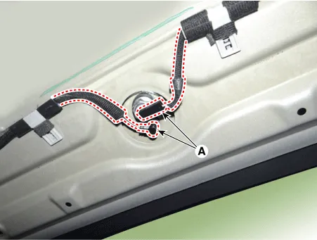 Components and components location Component Location 1. Hood latch release handle Repair procedures Replacement 1. Using a remover, remove the hood release handle (A). 2. Install in the reverse order of removal. • Make sure the hood latch cable is connected properly...