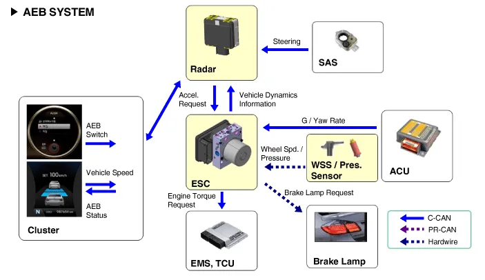 AEB system is designed to help avoid a potential collision or reduce its impact when drivers applies inadequate, delayed or no brakes at all to avoid a collision.