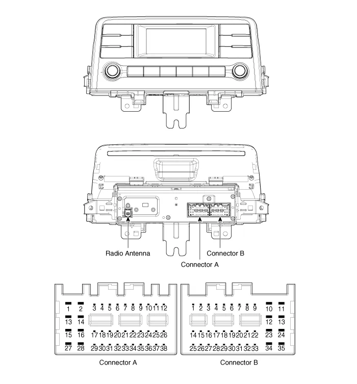 | 1. | Connect the audio unit connectors and antenna cable. |