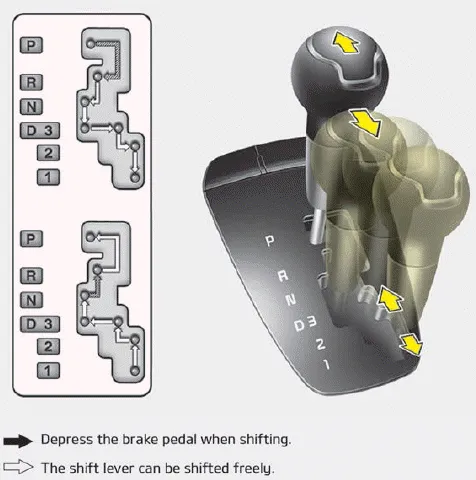 The automatic transaxle has 4 forward speeds and one reverse speed. The individual speeds are selected automatically, depending on the position of the shift lever.