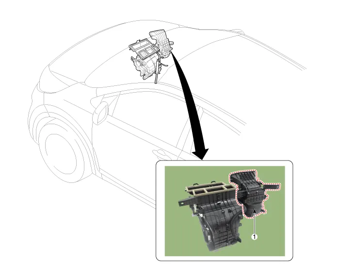 Components and components location Component Location 1. Heater Unit Components [LH] 1. Heater Core Cover 2. Mode Control Actuator 3. Mode Control Actuator braket 4. Mode Cam 5. Mode Cam 6. Heater Core 7. Door Cover [Floor] 8. Heater Case [LH] [RH] 1.