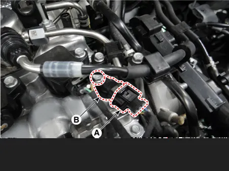 | 3. | Disconnect the camshaft position sensor connector (A). |