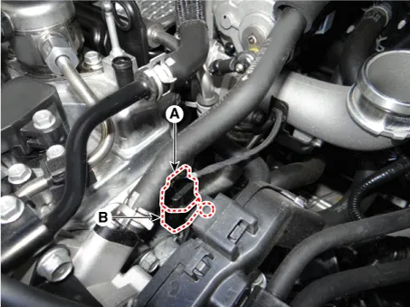 | 4. | Remove the sensor (B) by loosening the mounting bolt.