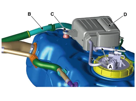 | 4. | Remove the mounting bolt (C) and then remove the canister (D).