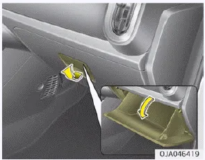 To open the glove box, pull the handle and the glove box will automatically open. Close the glove box after use.