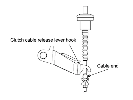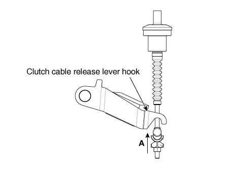 | 7. | Attach cable end to clutch release lever hook, by lifting clutch pedal in (A) direction.