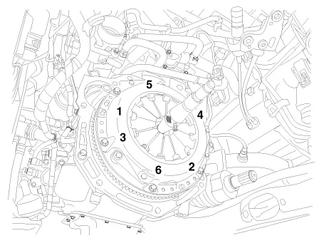 | 4. | Install the clutch cover bolts. Not to be bent or twisted, Tighten them in diagonal directions