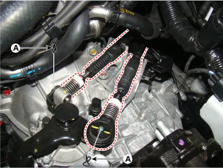 | 1. | Install the shift cable retainer by tightening nuts (A).