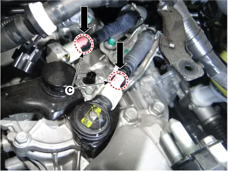| 5. | Push the lock (C) after installing the control cable to the control shaft.