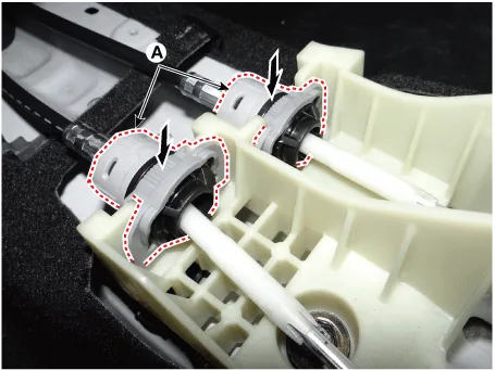 | 7. | Remove the cable sockets (A) from the shift lever.