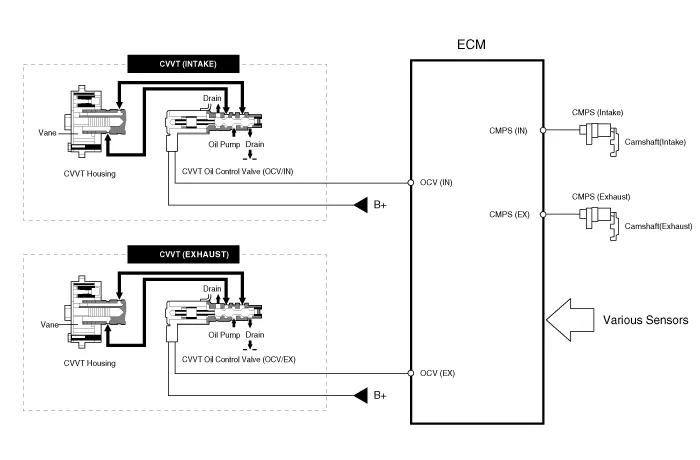 CVVT Oil Control Valve (OCV) which supplies the engine oil to the cam