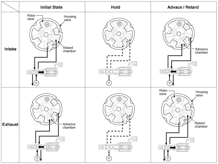 CVVT has the mechanism rotating the rotor vane by hydraulic force