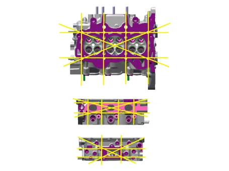the combustion chamber, intake ports, exhaust ports and cylinder block