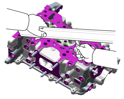 contacting cylinder block and inspect the manifolds for warpage. If the flatness is greater than maximum, replace the cylinder head.