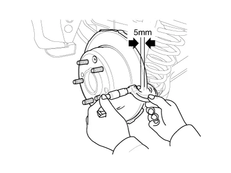 | 4. | If the runout cannot be corrected by changing the position of the brake disc, replace the brake disc. |