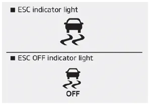 The ESC indicator light blinks whenever ESC is operating or illuminates when ESC fails to operate.