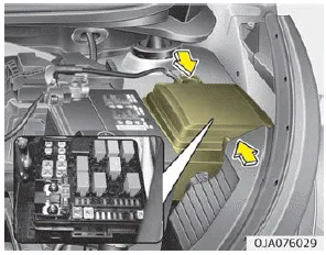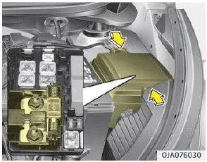 After checking the fuse panel in the engine compartment, securely install the fuse panel cover through the audible clicking sound. If not, electrical failures may occur from water contact.