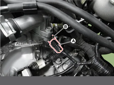 | 4. | Disconnect the engine coolant temperature sensor connector (A). |