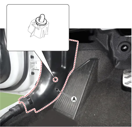 | 5. | Remove the front door scuff trim (A) by using a remover.