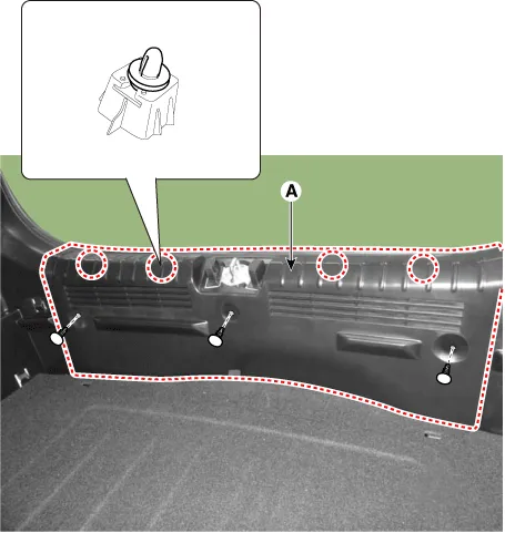 | 15. | Remove the luggage side trim (A) after loosening the mounting screws.