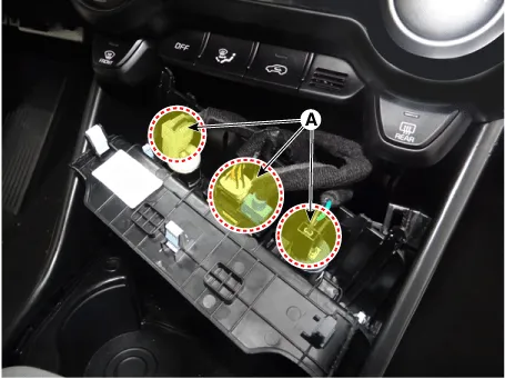 | 5. | Remove the console front tray, after disconnecting the connectors (A).