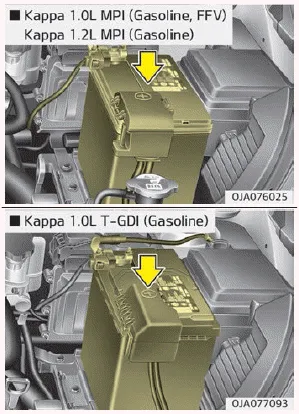 Basically equipped battery is maintenance free type. If your vehicle is equipped with the battery marked with LOWER and UPPER on the side, you can check the electrolyte level. The electrolyte level should be between LOWER and UPPER. If the electrolyte level is low, it needs to add distilled (demineralized) water (Never add sulfuric acid or other electrolyte). When refill, be careful not to splash the battery and adjacent components. And do not overfill the battery cells. It can cause corrosion on other parts. After then ensure that tighten the cell caps. Contact a professional workshop. Kia recommends to visit an authorized Kia dealer/service partner.