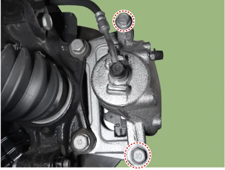 | 4. | Loosen the caliper bolts and then remove the caliper member.