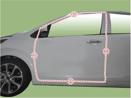 | 2. | Place the vehicle on a firm, level surface when adjusting the doors. |