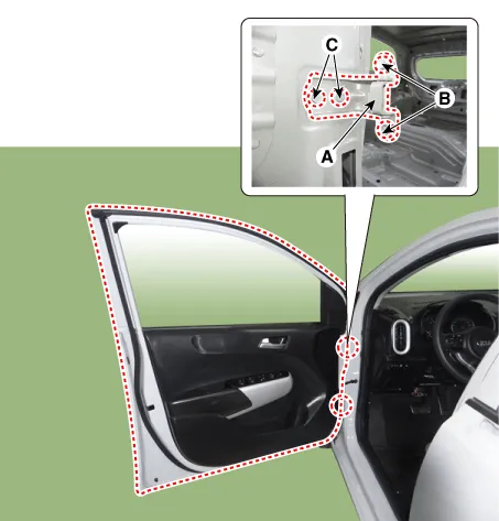 | 2. | Remove the front door seal (A).