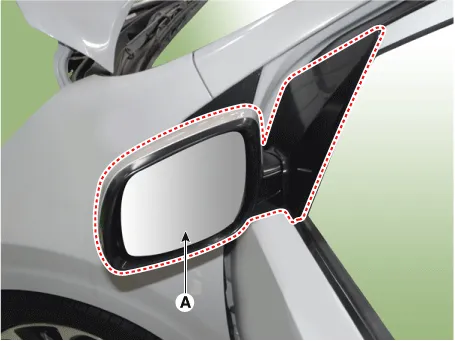 | 3. | Remove the outside rear view mirror (A).