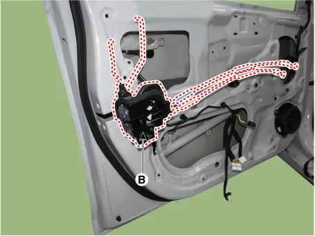 | 8. | Remove the front door latch (A) after disconnecting the latch connector(B).