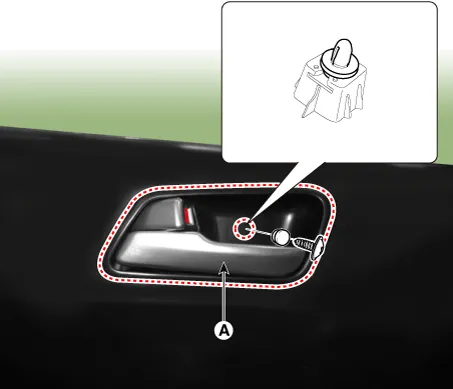 | 3. | Remove the front door inside handle cap (A).