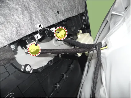| 2. | Disconnect the front door tweeter speaker connector (A).