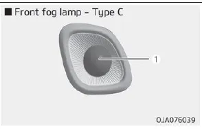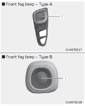 If the front fog lamp (1) does not operate, have your vehicle checked by a professional workshop. Kia recommends to visit an authorized Kia dealer/ service partner.