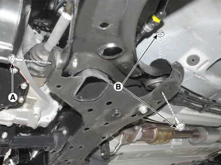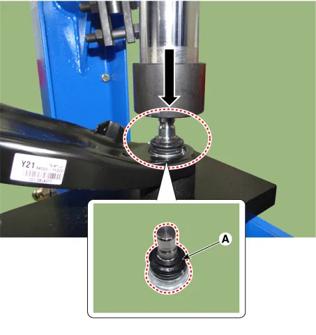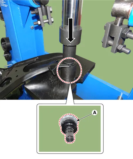 | 3. | Using a press, remove the ball joint (A) from the lower arm.