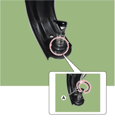 | 2. | Remove the snap ring (A) from the lower arm ball joint.