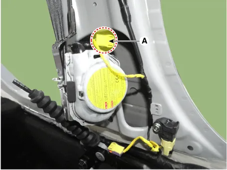 | 2. | Remove the front seat belt upper anchor (A) after loosening the mounting bolt.